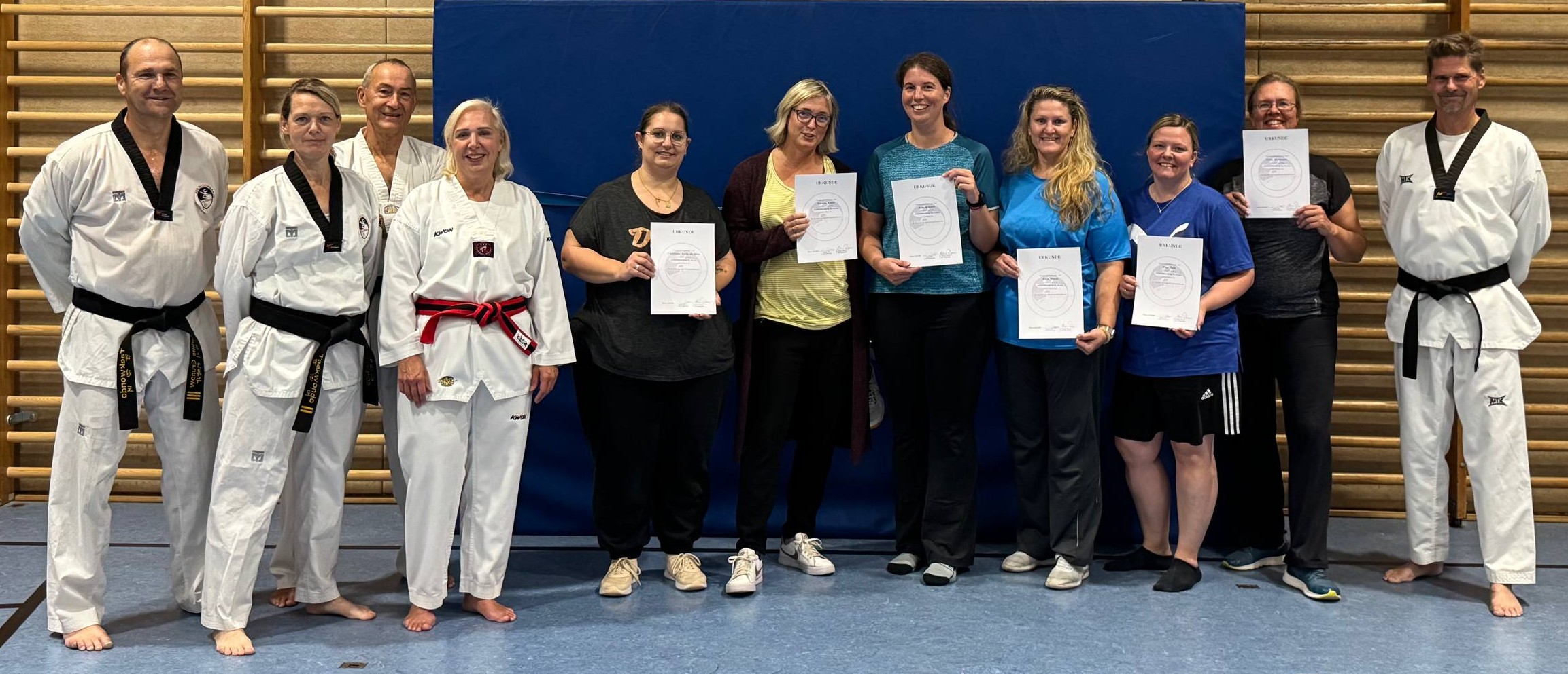 Unter Anleitung unserer erfahrenen Selbstverteidigungstrainer Ralph Sabo, Maren Ripp und Yvonne Moore fand in den Wochen vom 28.09.2025 bis 26.09.2025 unser Selbstverteidigungskurs speziell für Frauen statt. Die Teilnehmerinnen lernten und trainierten hierbei effektive Techniken zur Befreiung z. B. aus Umklammerungen und Griffen, aber auch Abwehr von Schlägen. Im Fokus stand jeweils das Meistern und Entkommen aus der Situation. Genau so wichtig war den Trainern auch die Selbstbehauptung und das frühzeitige Erkennen und Vermeiden gefährlicher Situationen. Alle Teilnehmerinnen haben den Kurs erfolgreich abgeschlossen. Wir gratulieren!